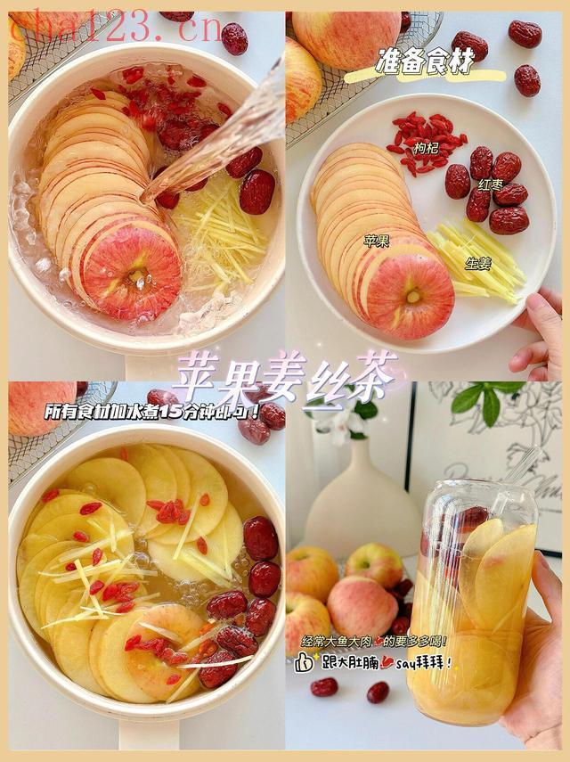 - 食材:苹果1个、生姜3片(切成丝)、红枣4颗(去核)