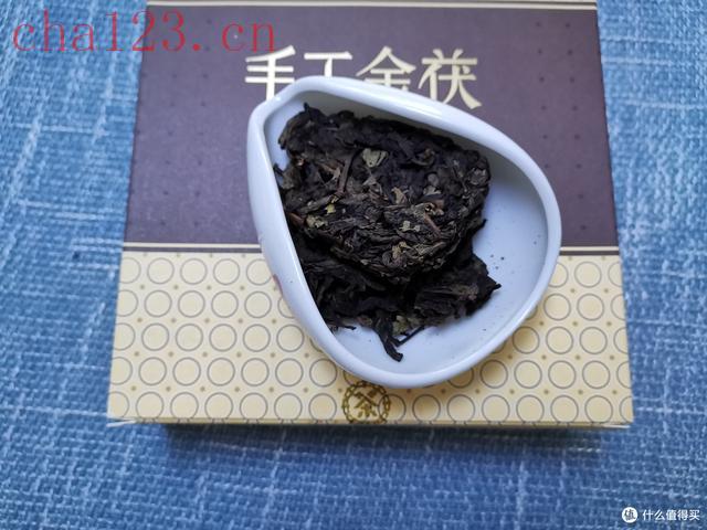 中茶的这款性价比也不错,可以来看一下干茶,砖面平整、压制的松紧适度,适度含梗,色泽褐润,泡上一杯茶汤颜色橙红、较为明亮,入口滋味温和没有涩感,较为甘醇、回味尚可。