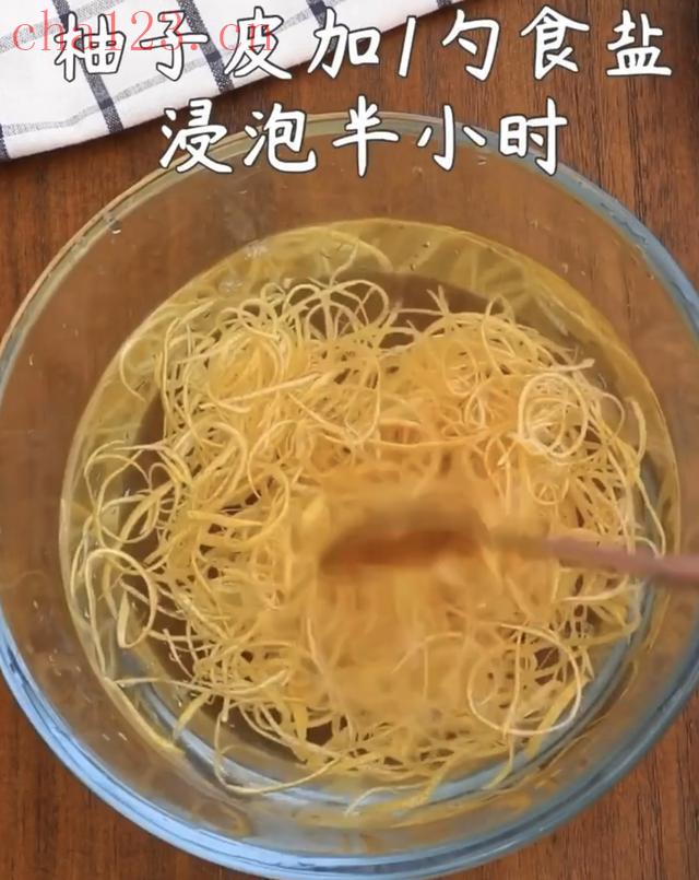 ✅ 柚子皮丝加一勺盐泡30分钟,再下锅煮10分钟捞出来冲干净(这步是去涩味的关键,别偷懒!)