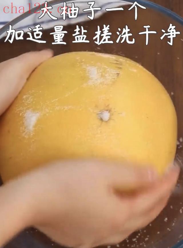 ✅ 先准备1个大柚子,撒上食盐使劲搓洗(去蜡又干净,吃着放心),随便用啥方法去皮都行,主打一个随性~