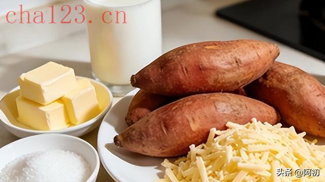 午后犯困的时刻,谁能拒绝一份香甜软糯的芝士焗红薯?绵密的红薯泥裹着会拉丝的芝士,奶香混合着薯香,一口下去治愈感爆棚!关键是做法超简单,没有烤箱也能轻松复刻,20 分钟就能端上桌,宅家也能实现下午茶自由。食材清单(2 人份)红薯 2 个(中等大小)、芝士碎 50g(拉丝款选马苏里拉)、纯牛奶 2 勺、黄油 10g、白砂糖少许(根据红薯甜度调整)、熟黑芝麻(装饰用)