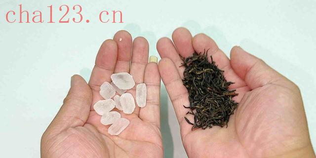 把茶叶、冰糖、盐一起丢进杯子,80℃热水一冲,一杯“熬夜续命水”就算齐活。