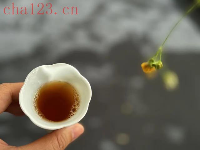 柚子皮色的茶汤,不像武夷岩茶,倒像是铁观音的样子。