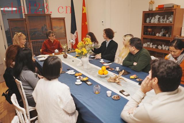 老路发起的中国茶品鉴会现场。巴黎中国茶文化中心供图