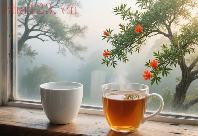 一个有雾的清晨,一位城市居民在家里推开窗,看到窗外的雾、老树的落叶、邻家的石榴花,也看着杯子里一片茶叶在水中舒展。