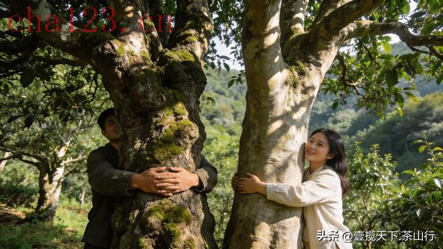 实操判断法看树干:粗壮需人合抱,树皮粗糙有苔藓,无人工修剪痕迹看环境:与杂木共生,无规整茶园形态,土壤腐叶层厚看叶片:肥厚有绒毛,边缘锯齿锋利,捏着有弹性不碎裂二、大树茶:山林边缘的"联排小院",树形高大无苔藓"古树茶旁边的就是大树茶,看着像但差一截。" 茶农大叔带我走到山林边缘,这里的茶树比古树稍细,一人就能抱住,树形同样高大,枝叶茂密,但树干上很少有苔藓,周围的杂草被清理过少许。