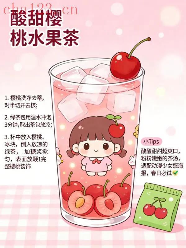 樱桃水果茶粉嫩少女心爆棚,冰爽口感超绝。