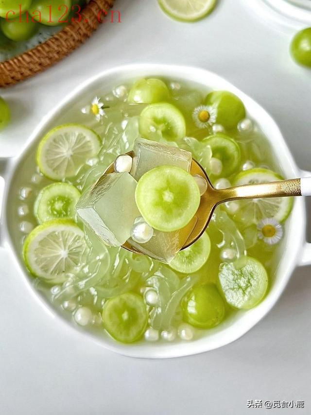做法:青提洗净,用刀划十字(更容易出味),和茉莉花一起放入杯中,倒入温水,焖泡5分钟,茉莉的清香搭配青提的清甜,零卡无负担,喝起来超级治愈,适合春天午后饮用。
