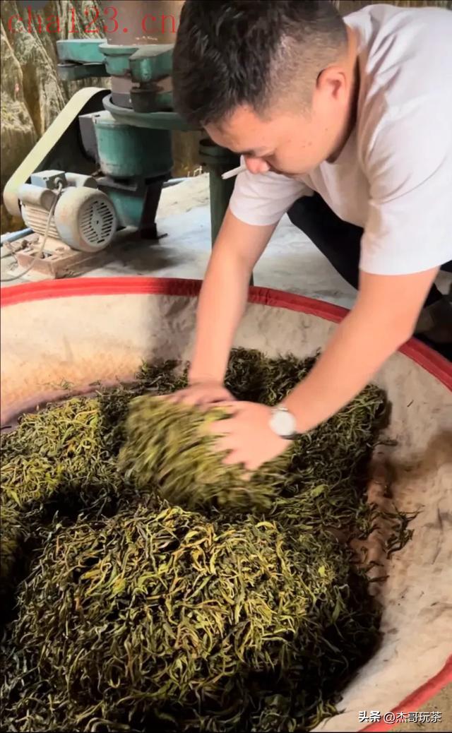 揉捻使得叶和梗的细胞壁破裂,茶汁渗出。将茶叶的滋味释放出来,揉的轻了,滋味出不来揉的重了,茶叶脱皮,茶汤浑浊有杂质。比较考验制茶人的手感和经验。
