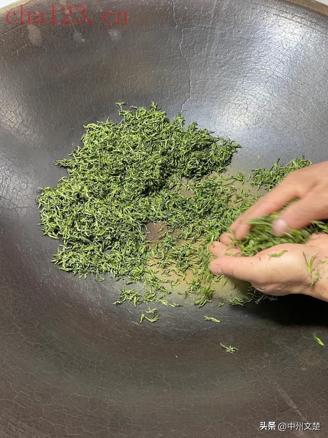 炒青,就是铁锅炒。有的用机器,有的靠大师的一双手在几百度的铁锅里翻炒。